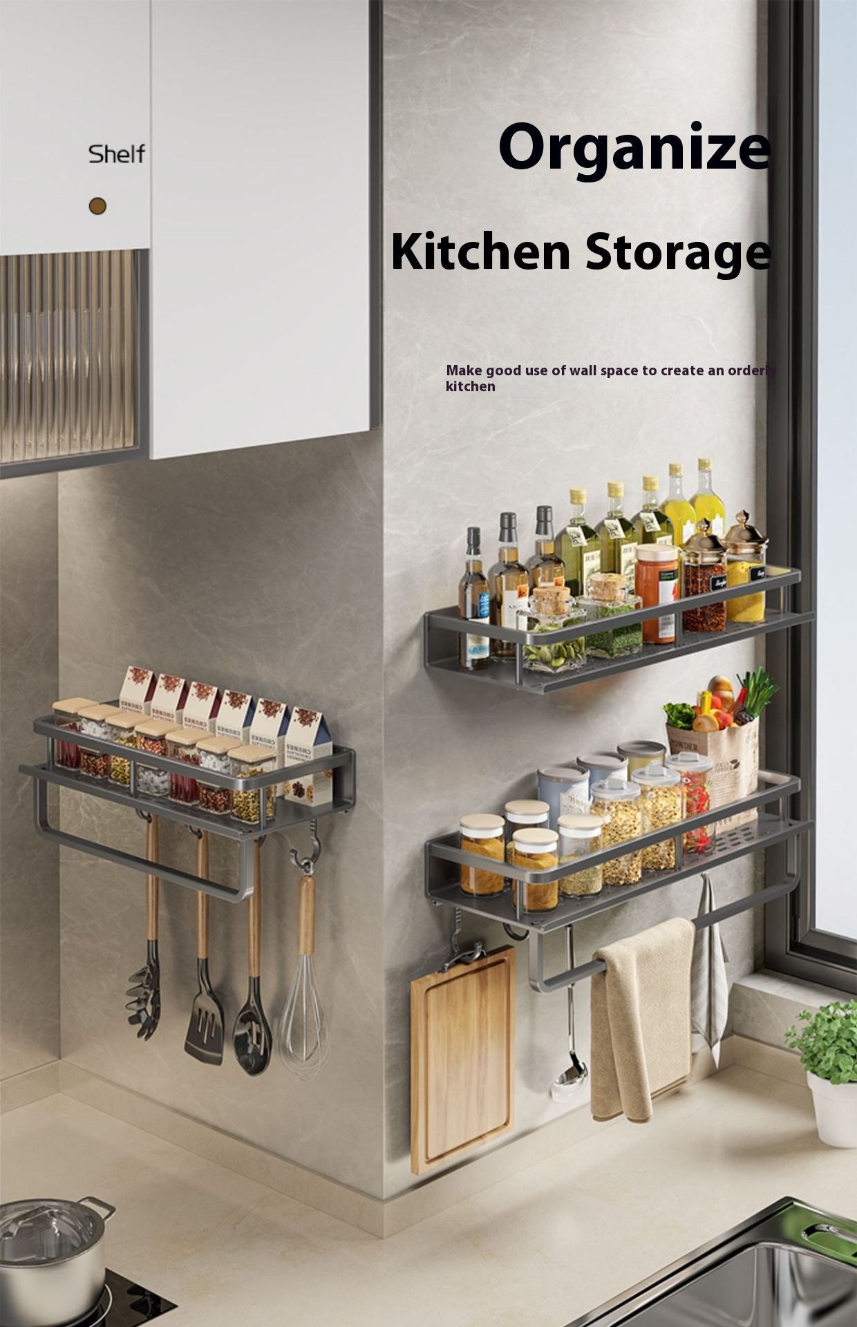 • Multi-purpose storage → suitable for seasonings and kitchen tools